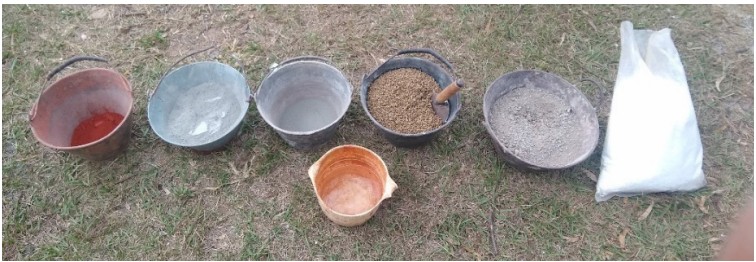 1°) Incorporar agua a los agregados reciclados, mezclar y dejar secar unos 15 minutos. En la Figura 1 se muestran los agregados para formar la pasta para las baldosas.