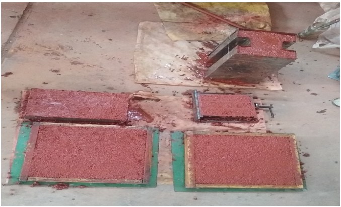 Figura 3. Llenado de los moldes para sus posteriores ensayos de conductividad térmica.