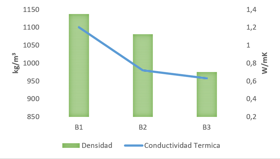 Figura 6. Resultados de la densidad y la conductividad térmica.