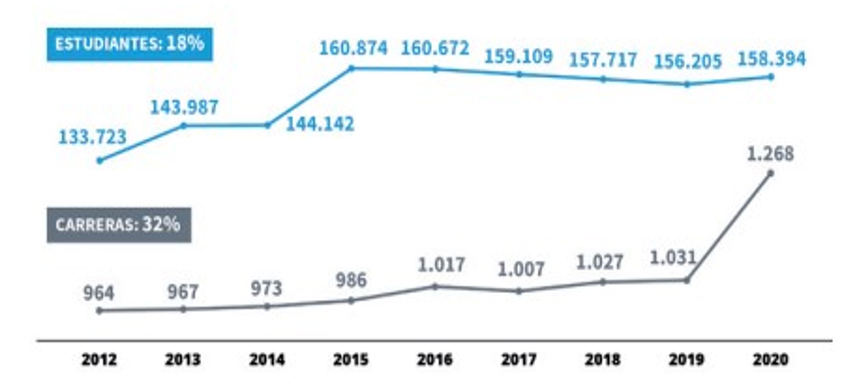 - Independientemente del arancelamiento, la gestión de las carreras se clasifica en estatal o privada. ↩